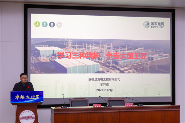 12月13日晚,必赢线路检测3003no1“卓越大讲堂”开讲,活动邀请了全国劳动模范、国网安徽送变电工程有限公司三级职员、特高压工程项目经理王开库同志作为演讲嘉宾。活动由必赢线路检测3003no1执行院长黄海鸿主持,2024级校企联合科研与人才培养工程硕博士专项全体党员和2025届工程硕博士培养改革专项学生聆听了报告会。