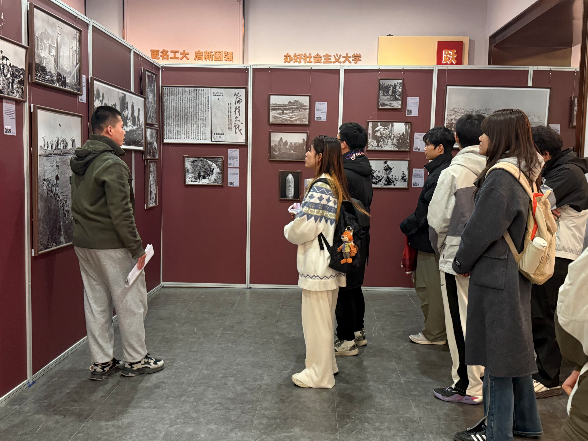 12月6日,必赢线路检测3003no1开展“忆峥嵘岁月 立报国大志”主题实践教育活动,组织学生赴校史馆参观由学校与新华通讯社联合举办的“国社之镜・世纪光影之人民必胜”主题艺术展。